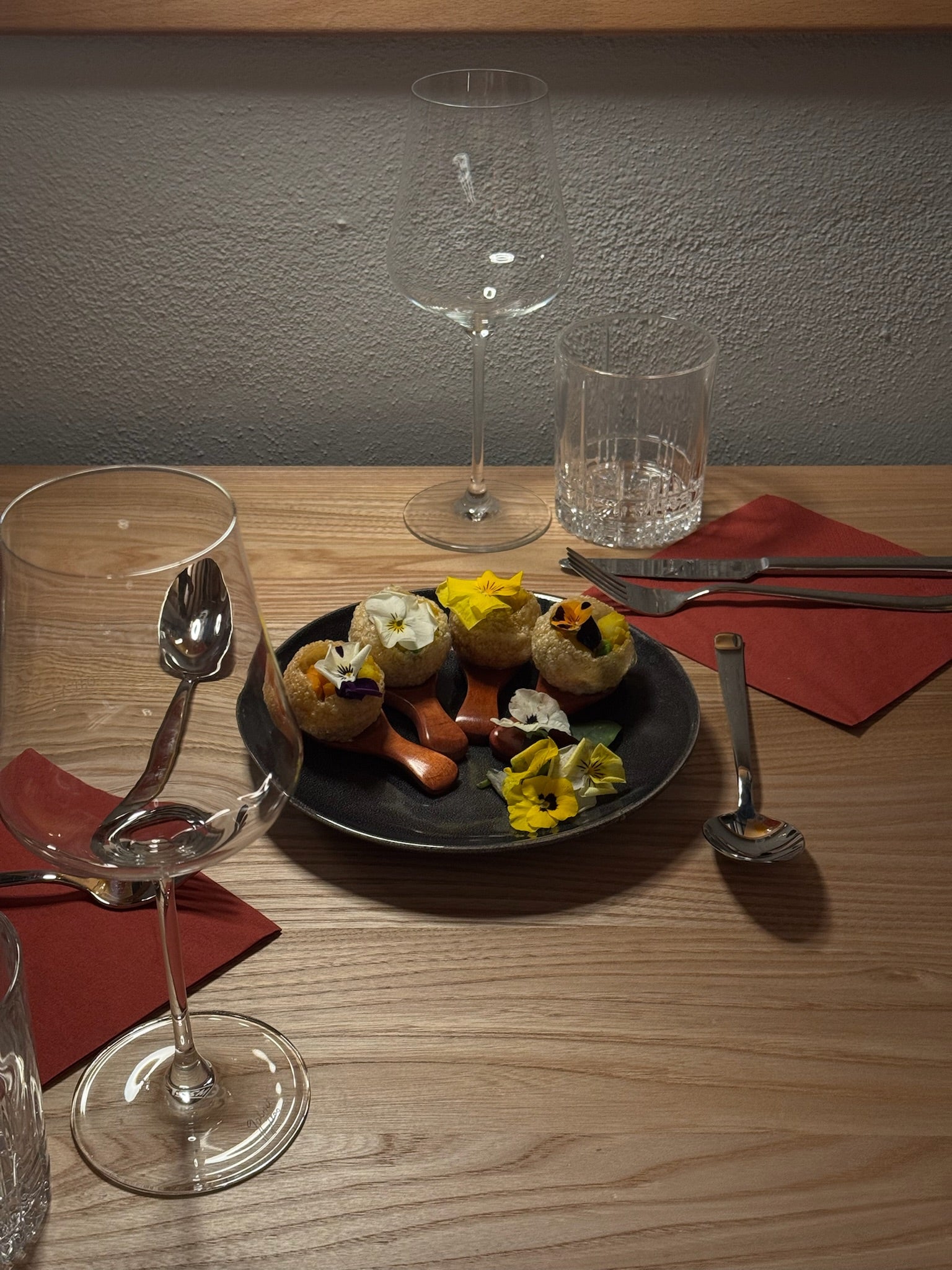 Die Dinner sind vollständig vegan, unsere Cocktail- und Weinkarte enthält nichtvegane Optionen. Sprecht uns gern an, wenn ihr hier eine vegane Option wünscht.